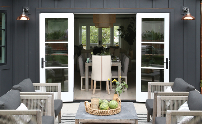 Black framed patio doors are a hot trend right now, especially when you match both the exterior and the interior. This look is perfect for Farmstyle and contemporary homes and can really make a stunning impact.