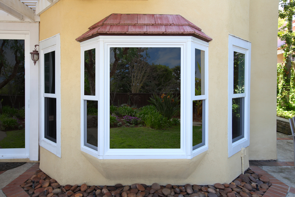 Basically, a bay window is a configuration of three windows that form half of a hexagon. The middle window is often a fixed picture window, while the two adjacent windows can be either fixed or movable. In addition, the middle window is almost always larger than the other two.