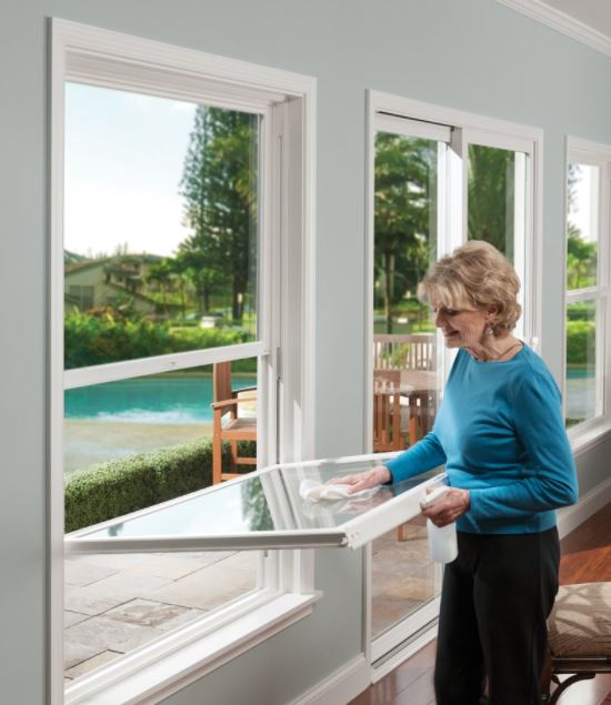 Cleaning windows may not be at the top of your list of things to do, but, it should be done at least once a year. Older windows may be difficult to clean if they do not easily lift out of the tracks. Newer replacement windows are much easier to maintain as they are designed to be removed more easily. For second floor rooms, consider a double-hung operating style where the sash can actually tilt inward making exterior cleaning a breeze.